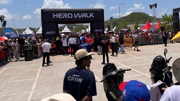 Di bawah sengatan sinar matahari, para penggemar setia memadati area Hero Walk di Sirkuit Pertamina Mandalika.